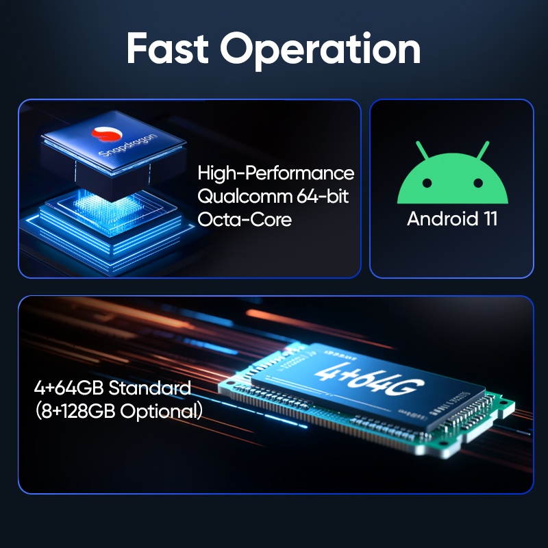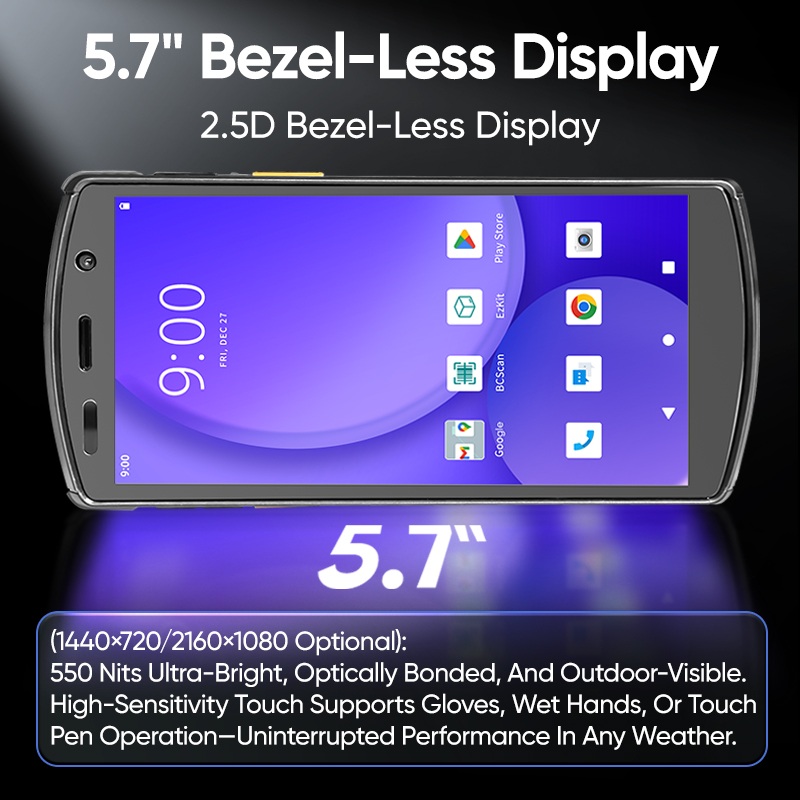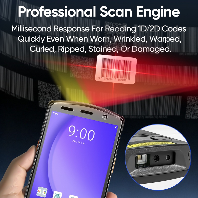 ماسح ضوئي محمول بشاشة كبيرة 5.7 بوصة، معالج كوالكوم ثماني النواة 64 بت، بتردد 2.4 جيجا هرتز