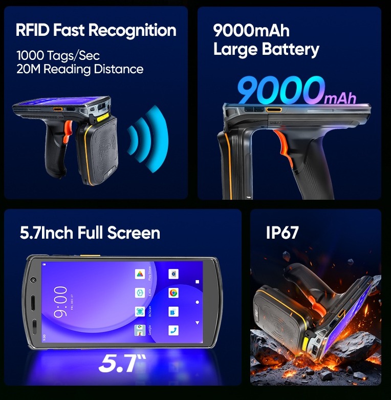 جهاز طرفي ذكي محمول باليد بتقنية UHF RFID يعمل بمعالج Impinj E710